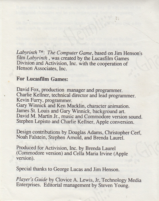 Labyrinth: The Computer Game è ad oggi universalmente considerato la prima avventura grafica della Lucasfilm Games, prodotta su commissione a supporto del film fantastico Labyrinth — Dove tutto è possibile di Jim Henson del 1986.