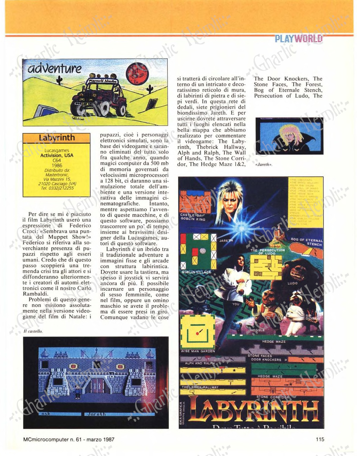 È del tutto fondato, dunque, ritenere corretta l'informazione presente su una recensione d'epoca in cui la Mastertronic sas è citata espressamente come distributore italiano di Labyrinth (cfr. MC Microcomputer numero 61 anno 1987).