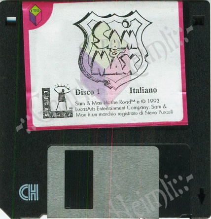 La versione su floppy di Sam & Max Hit The Road venne distribuita inizialmente in inglese. Questa versione è riconoscibile dal fatto che sulla scatola non si trova applicato nessun adesivo. Nelle versioni definitive del gioco, sia in edizione floppy che CD, appare un adesivo indicante la completa localizzazione del prodotto. All'interno della scatola è incluso un avviso su carta (abbastanza spartano, a dirla tutta) e una busta precompilata per la richiesta della versione coi sottotitoli in italiano. È interessante notare due cose: la prima è la data di distribuzione della versione completamente tradotta in italiano di Sam & Max, il 15 gennaio 1994; la seconda è l'etichetta del floppy che non riporta la dicitura "italiano" sotto al logo.