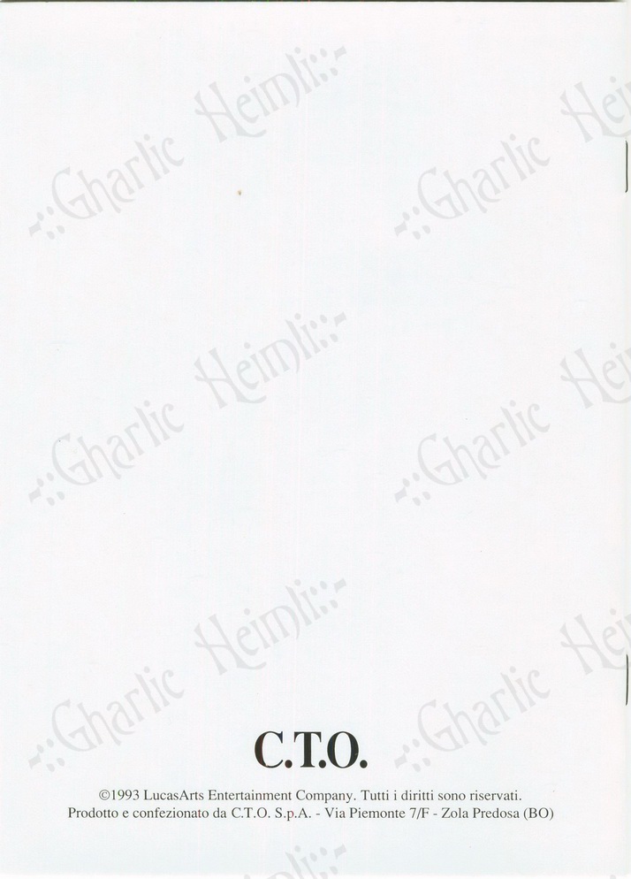 La seconda e ultima ristampa economica del gioco by C.T.O. è ancora in confezione digipak con costolina laterale colorata di azzurro. Il gioco è su CD-Rom e in omaggio è allegato un secondo CD contenente Indiana Jones And His Desktop Adventures e Star Wars Screen Entertainment. Le immagini sono state fornite da Dario.