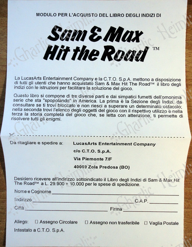 Scatola, manuale ed etichette dei sette floppy da 1,4 MB sono in italiano (notare la scritta "italiano" su di essi). A volte si sono viste copie di questa edizione senza nessun modulo per la richiesta del Libro degli indizi, ma contenenti la busta precompilata identica a quella mostrata soprai; le ragioni per cui fosse presente la busta restano ingote dal momento che non serve proprio a niente.
