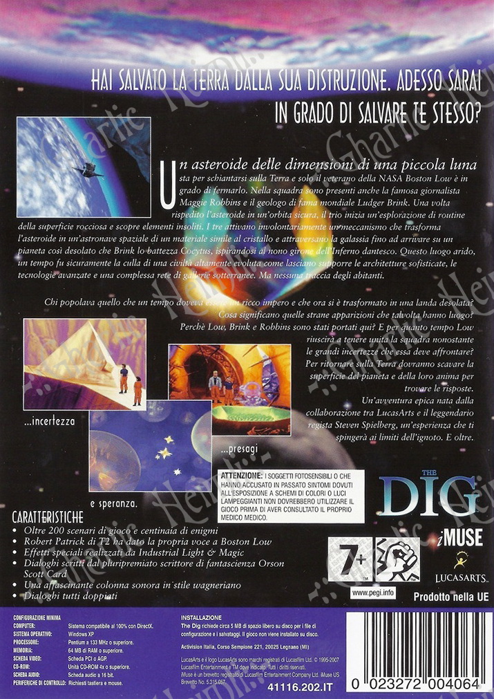 Anche The Dig, nel 2007, viene ristampato da Activision Italia nella linea LucasArts Classic. Come al solito abbiamo confezione in DVD-Case con inserto cartaceo tradotto per l'occasione, all'interno un foglietto nero con alcune istruzioni ed il gioco, che include lo stesso doppiaggio effettuato da C.T.O. nel 1996, su un CD-Rom. Per le immagini si ringrazia Ciscotn.