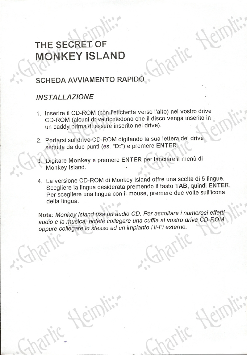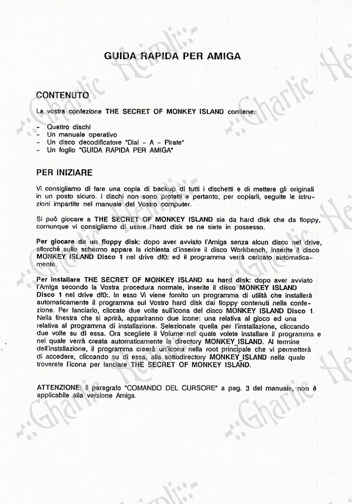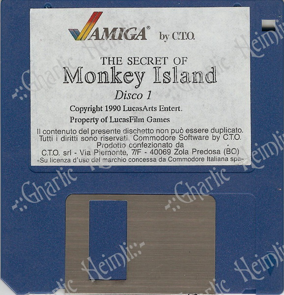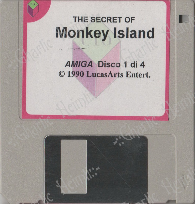 Sembra che The Secret Of Monkey Island sia stato pubblicato originariamente in inglese quantomeno su Amiga. La confezione del gioco non cambia rispetto alla prima edizione per Amiga mostrata qualche paragrafo più in avanti, c'è il manuale in italiano e l'etichetta sui dischetti è quella appropriata, ma il software è in inglese.