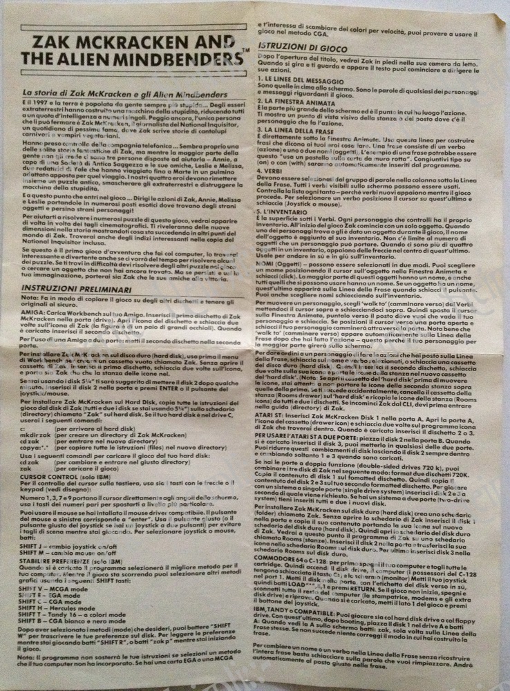A livello collezionistico la versione 256k pare essere quella meno rara, a fronte dell'introvabile 384k version e qui torniamo a parlare di cose che ci interessano: dal momento che la versione per PC a 8 bit di Zak McKracken non è mai stata importata, quella italiana è la 384k, come si nota facilmente anche sull'etichetta contenente i requisiti sulla parte frontale della scatola.